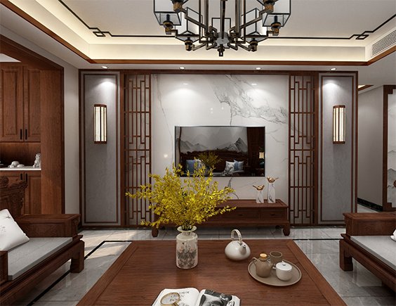 桂花城121平三室兩廳中式風(fēng)格裝修VR實(shí)景案例