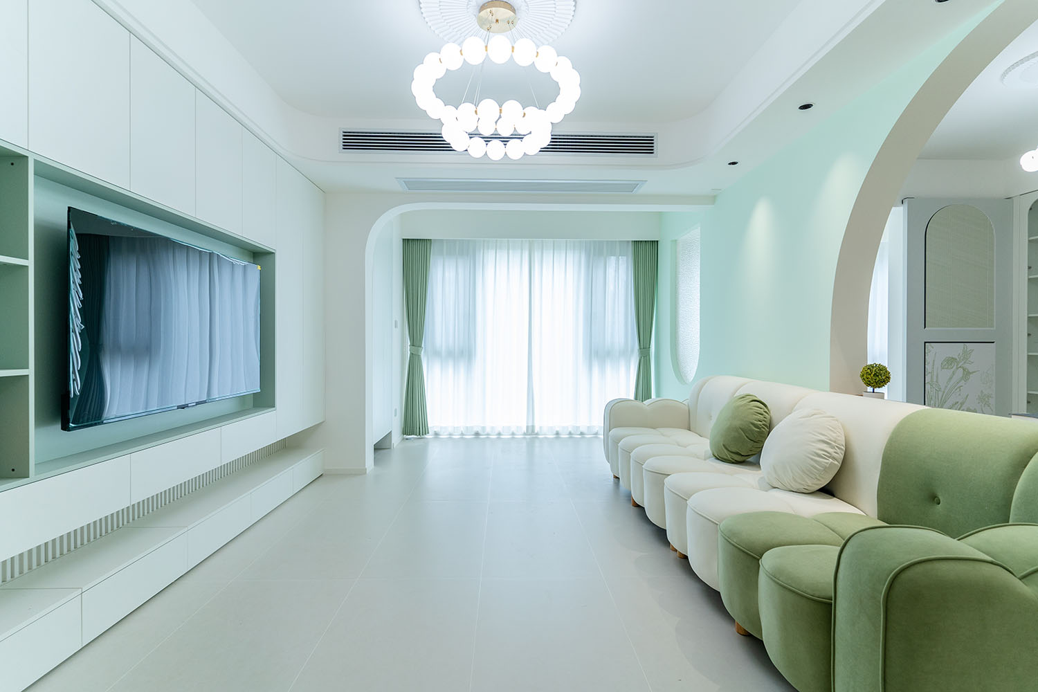 株洲金水灣115平奶油中古風(fēng)裝修實(shí)景