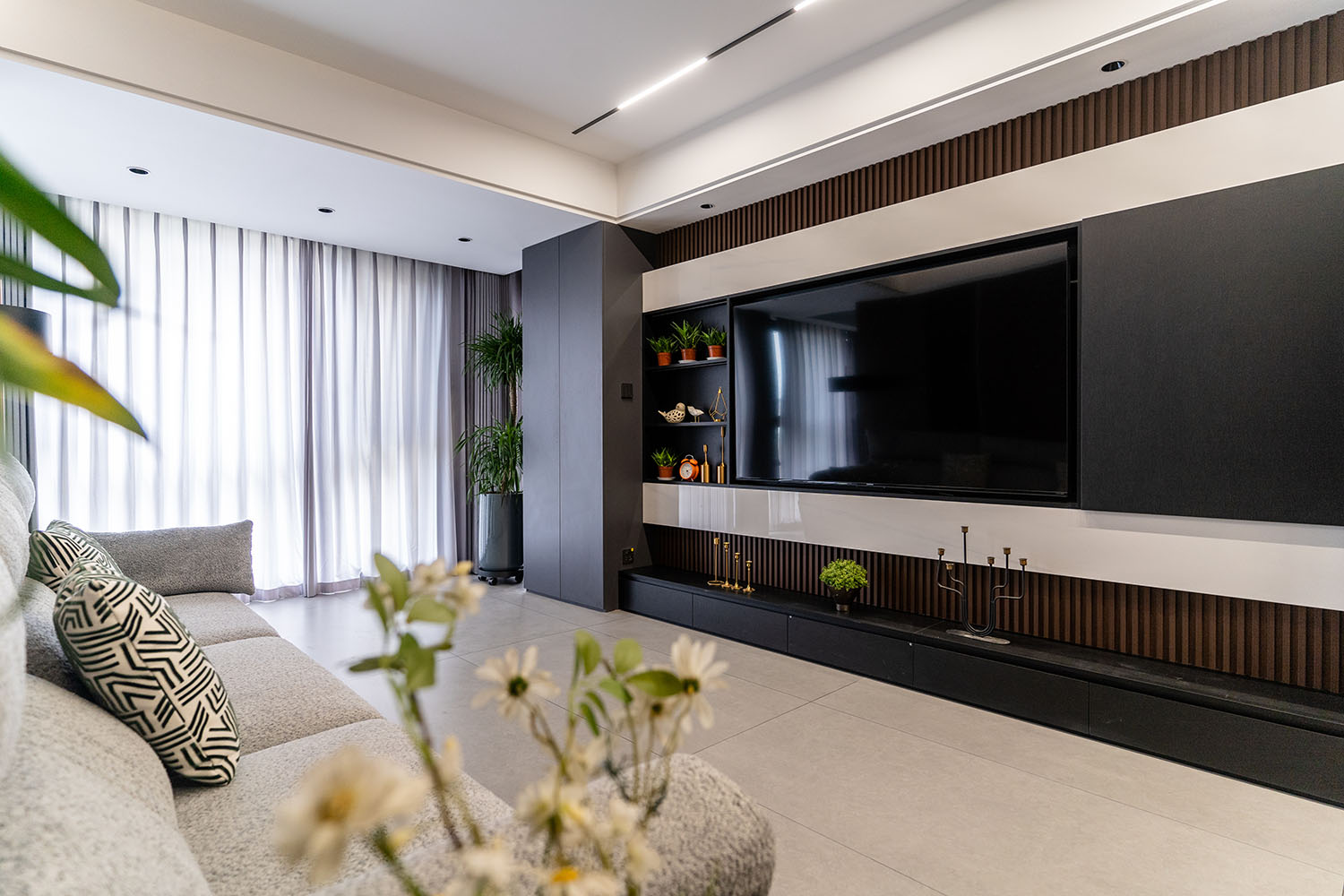 金水灣現(xiàn)代黑白灰裝修實(shí)景